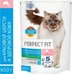 Сухой корм для кошек Perfect Fit для красивой шерсти и здоровой кожи с лососем, 650 г