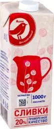 Сливки ультрапастеризованные стерилизованные питьевые Ашан Красная Птица нормализованные 20% Гост Бзмж, 1000 г