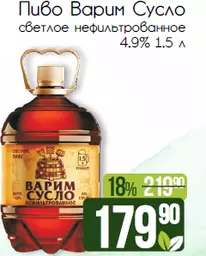 Пиво Варим Сусло светлое нефильтрованное 4.9% 1.5 л