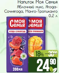 Напиток Моя Семья Яблочный микс, Ягода-сочнягода, Манго-тропиканго 0.2 л