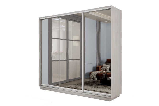 Шкаф-купе 3-дверный Slide-2 180х240х60 см, ясень анкор светлый, серебро, с тремя зеркалами 10679114
