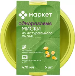 Миски одноразовые на основе кукурузного крахмала Маркет, 6х470мл