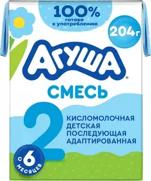 Смесь кисломолочная Агуша ступень 2 с 6 месяцев 3.4%, 200мл