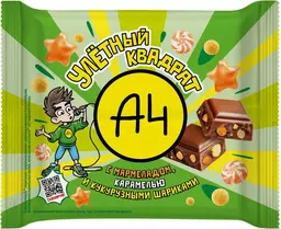 Шоколад А4 с кукурузными шариками, карамелью и мармеладом со вкусом апельсина, 55г