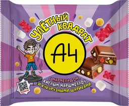 Шоколад А4 с мармеладом со вкусом клубники, кислым маршмеллоу со вкусом ванили и воздушными кукурузными шариками, 55г