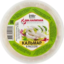 Кальмар Два капитана командорский отварной соломка в рассоле, 310г