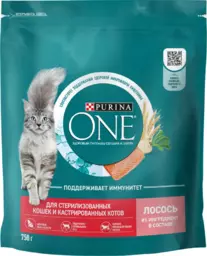 Сухой корм Purina One для стерилизованных кошек и кастрированных котов с лососем, 750 г