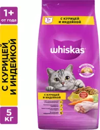 Сухой корм для кошек Whiskas Подушечки с паштетом Ассорти с курицей и индейкой, 5 кг