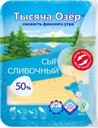 Сыр полутвердый Тысяча Озёр Сливочный нарезка 50% Бзмж, 125 г