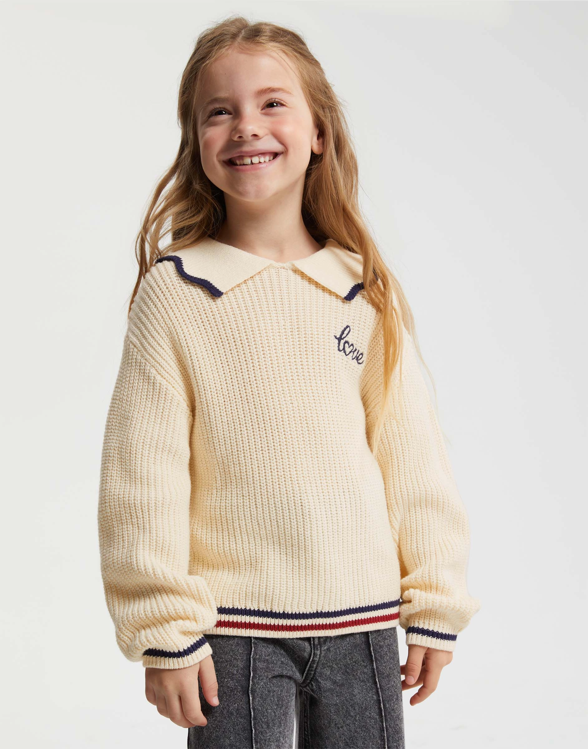 Бежевый джемпер с фигурным воротником для девочки Gsw007862-1