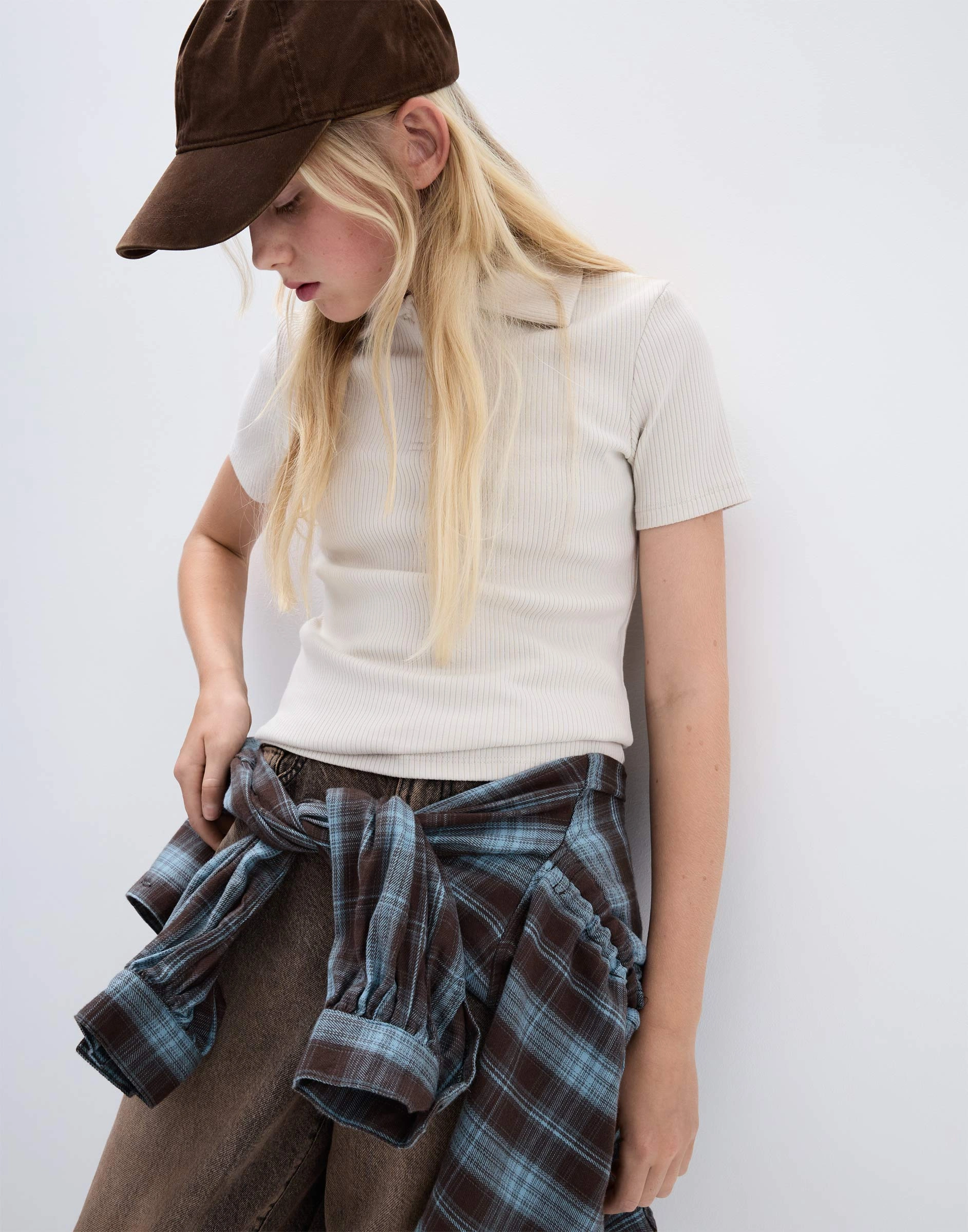 Светло-бежевая футболка-поло в рубчик Gkt027564-3