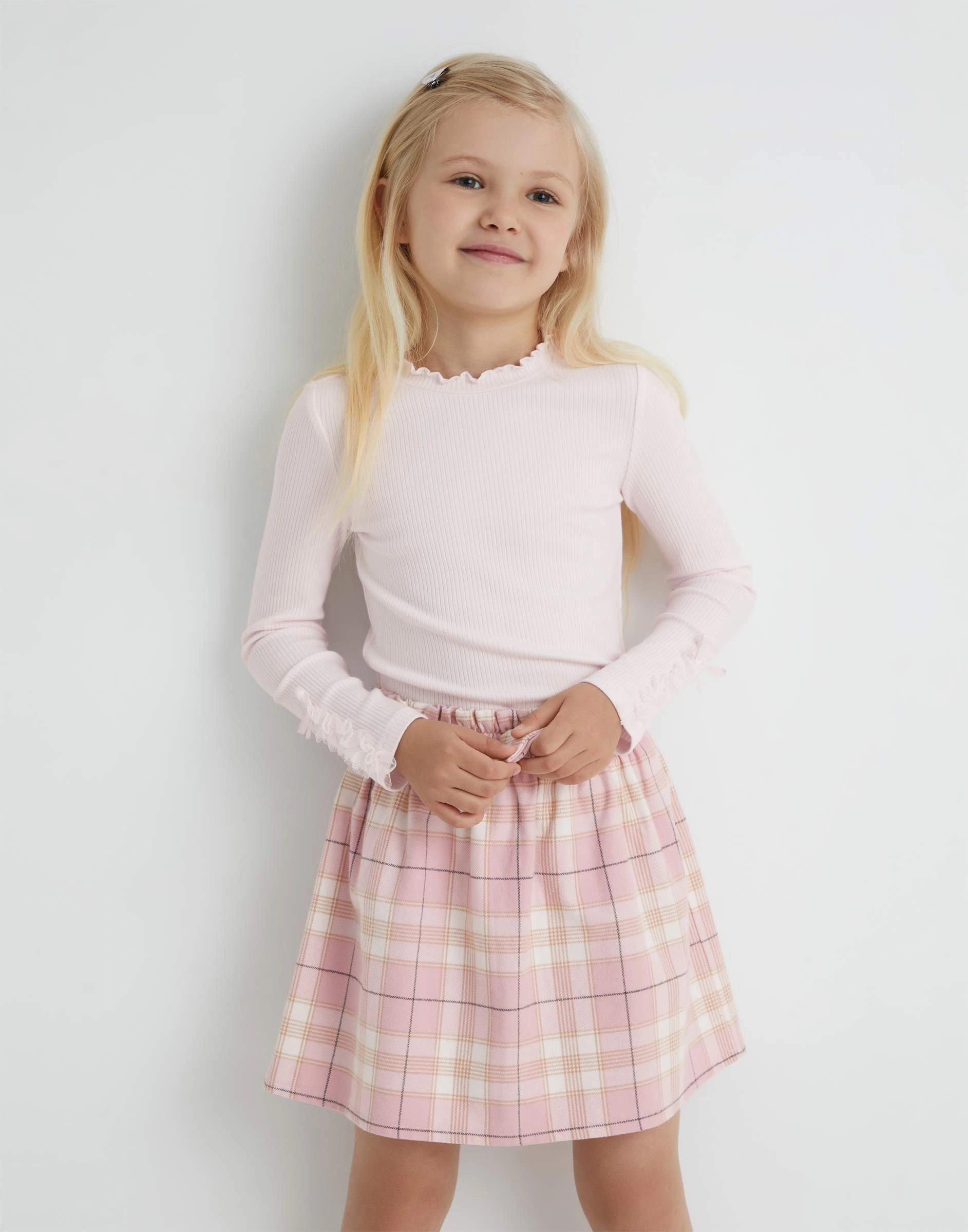 Светло-розовый лонгслив в рубчик с волнистым воротником для девочки Gkt027341-1