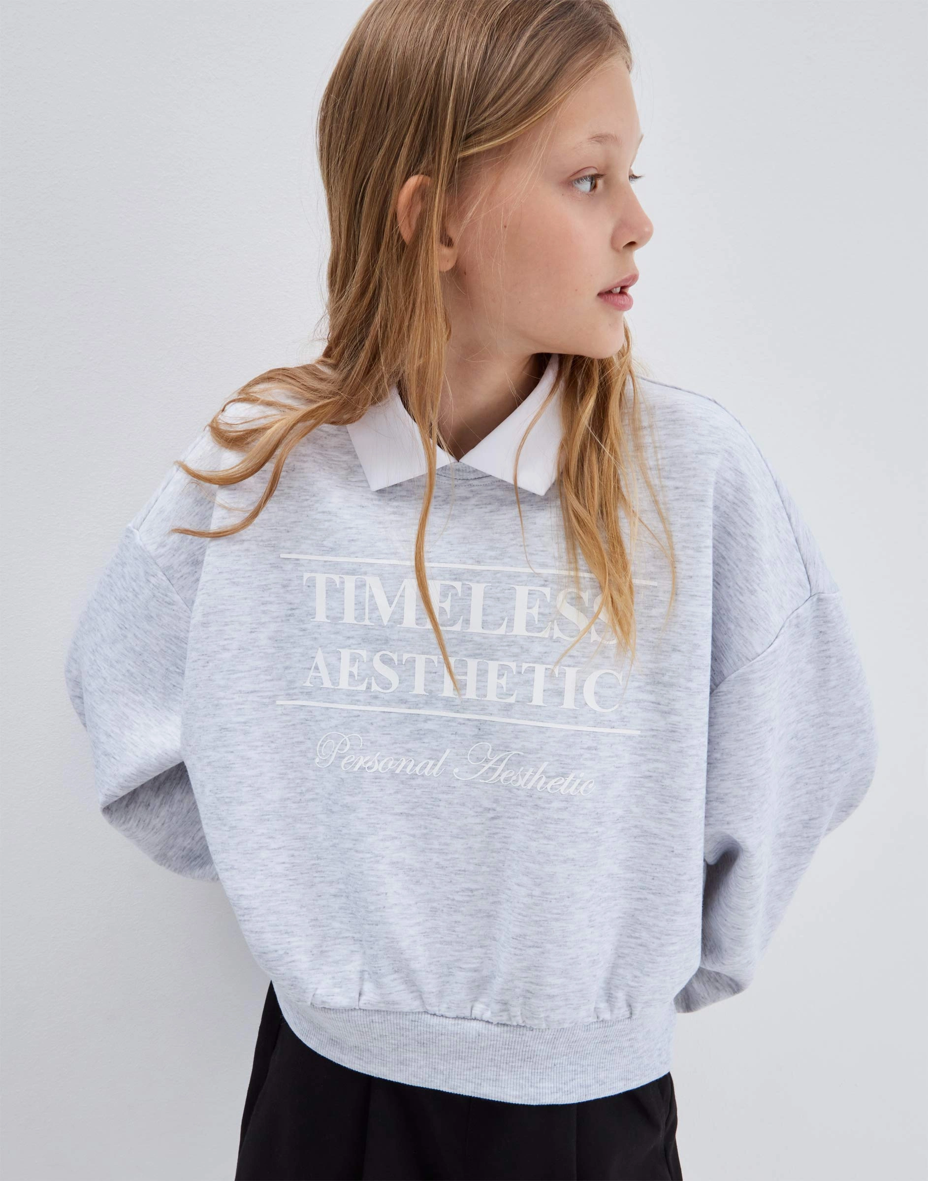 Светло-серый свитшот-поло из скубы с принтом Gac024879-1