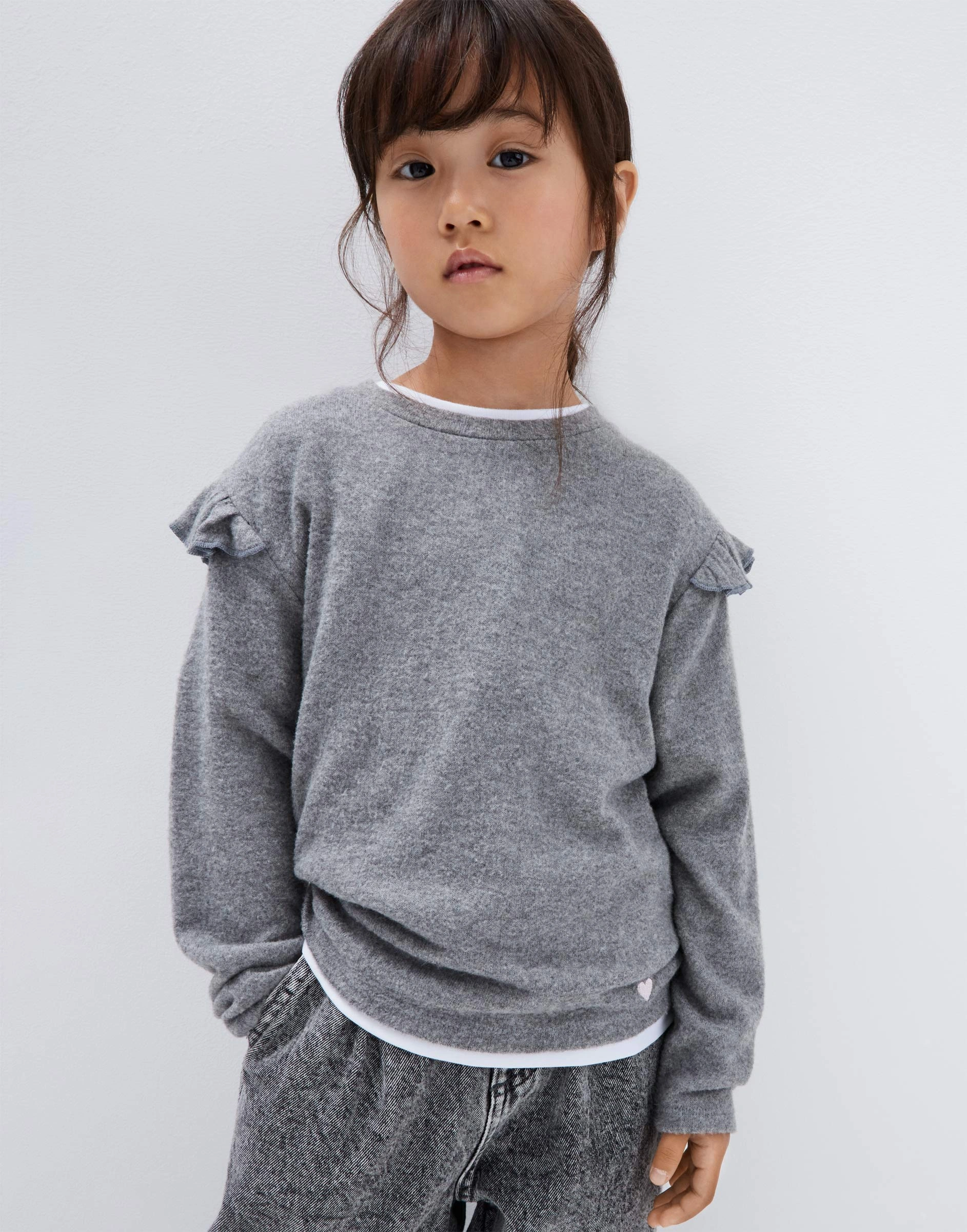 Серый лонгслив oversize с оборками для девочки Gkt027204-2