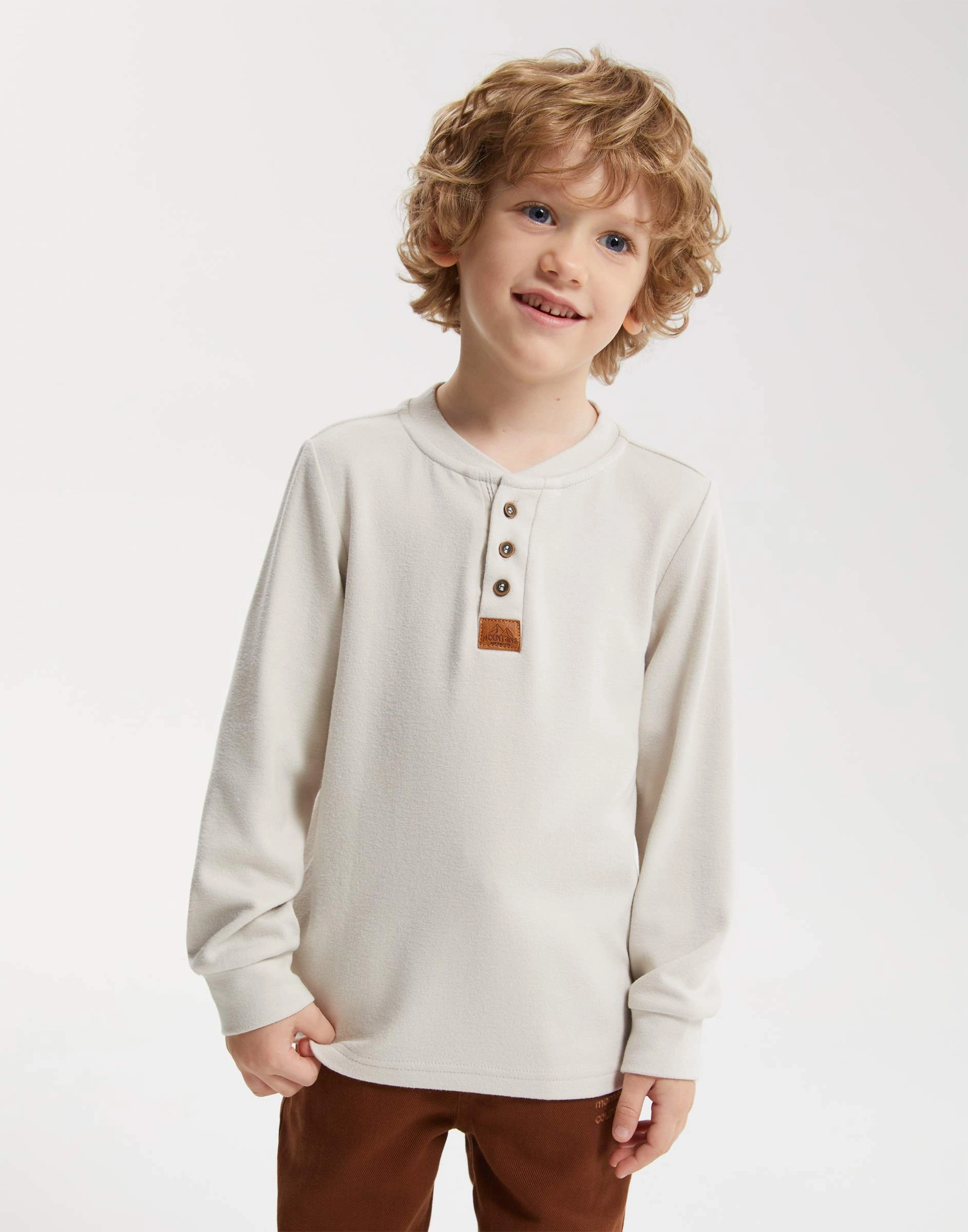 Бежевый лонгслив с вырезом хенли для мальчика Bkt017130-1