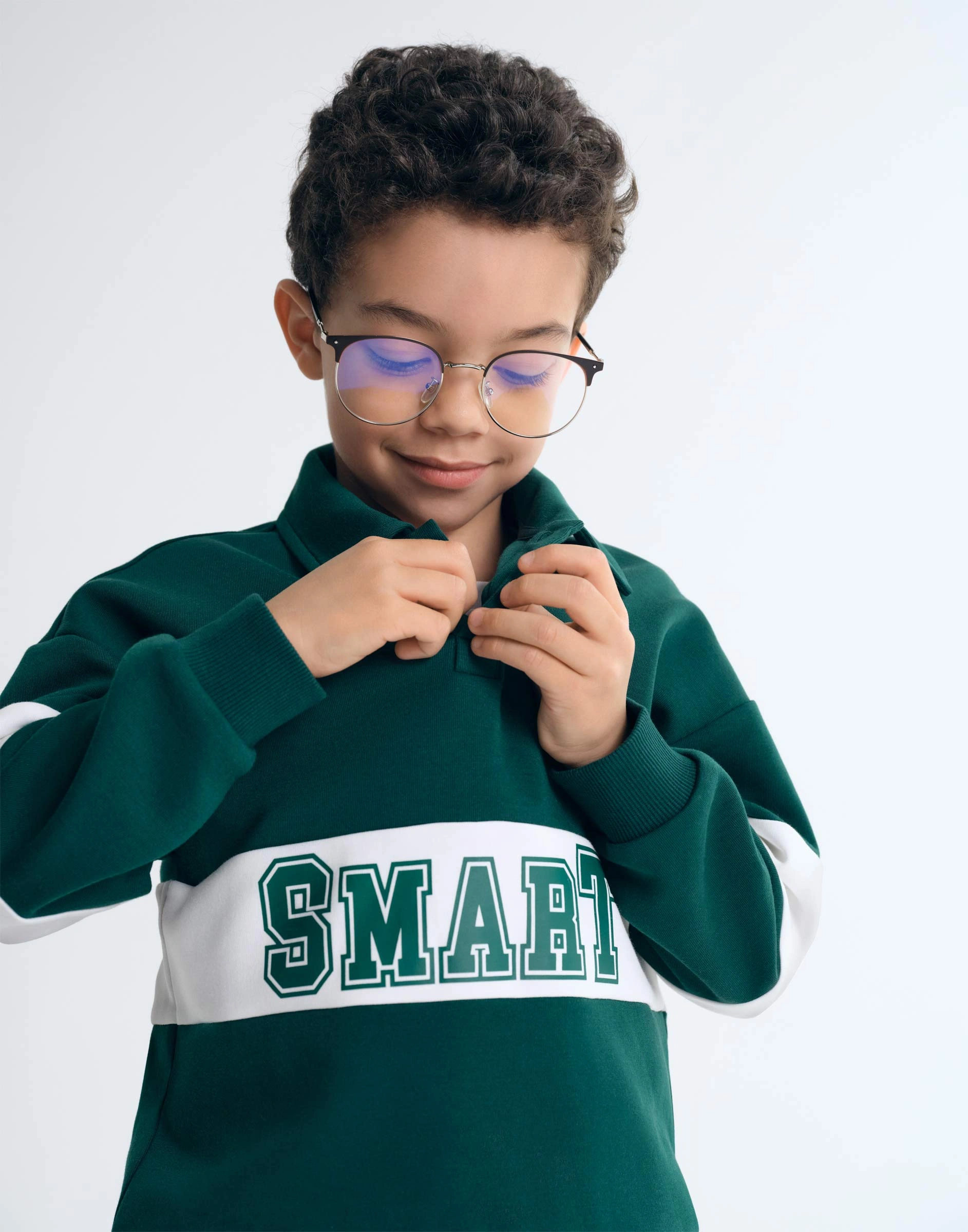 Зелёный свитшот oversize с принтом и воротником для мальчика Bac014248-2