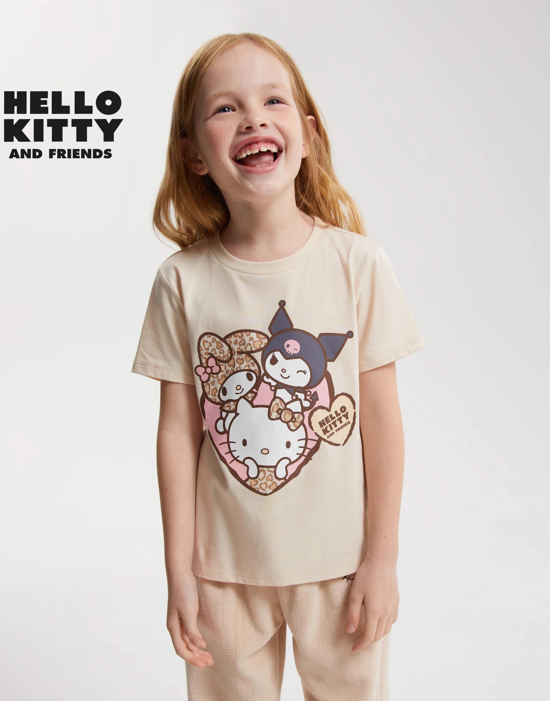 Бежевая футболка с принтом Hello Kitty для девочки Gkt027103-2