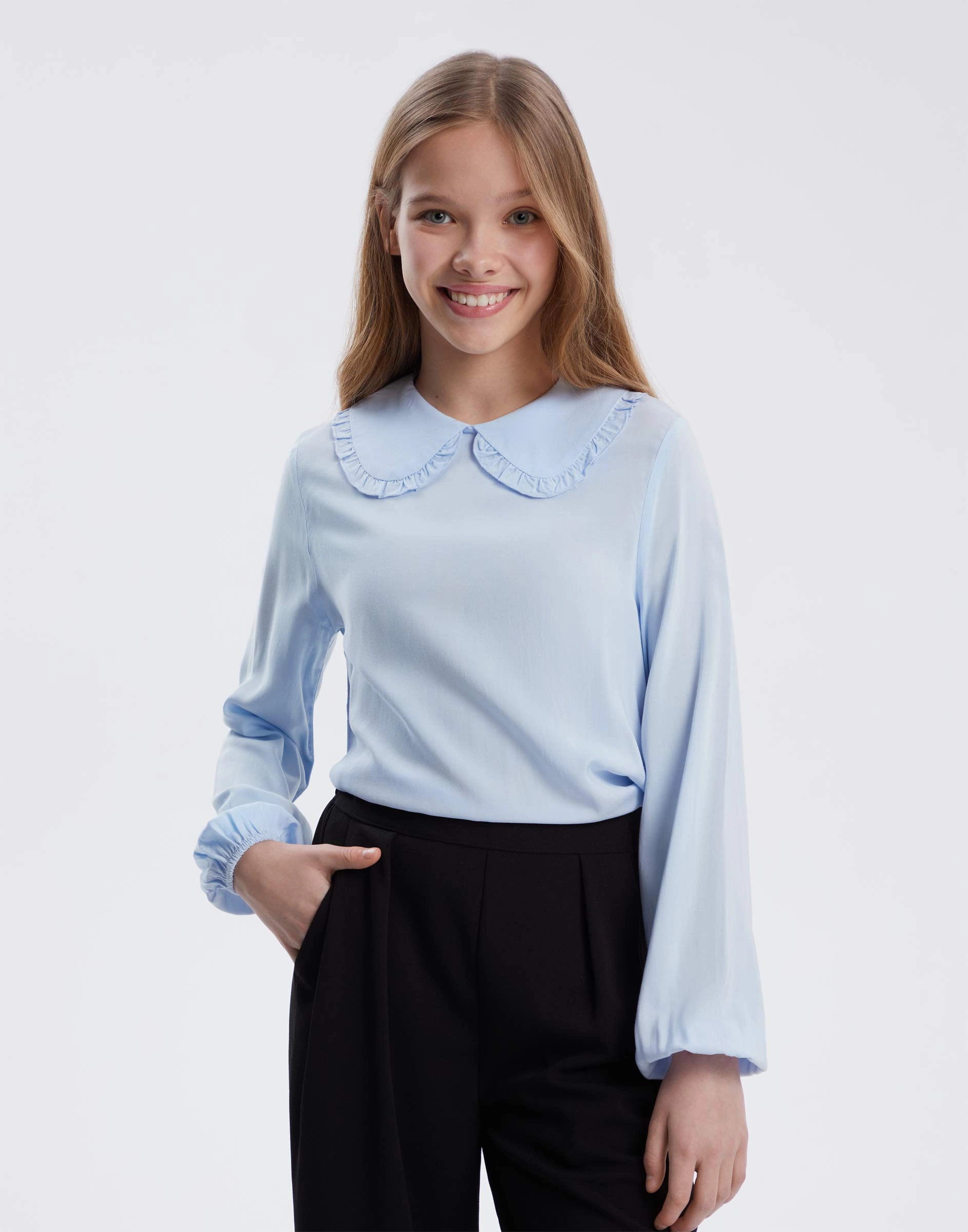Голубая блузка с рюшами Gwt004675-1