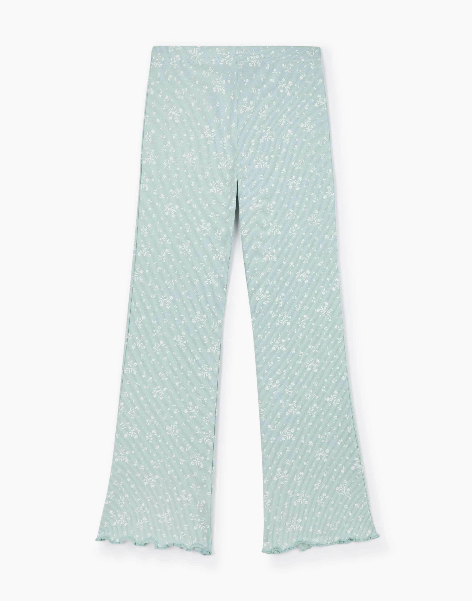 Мятные легинсы клёш в рубчик с принтом для девочки Ghs010596-1