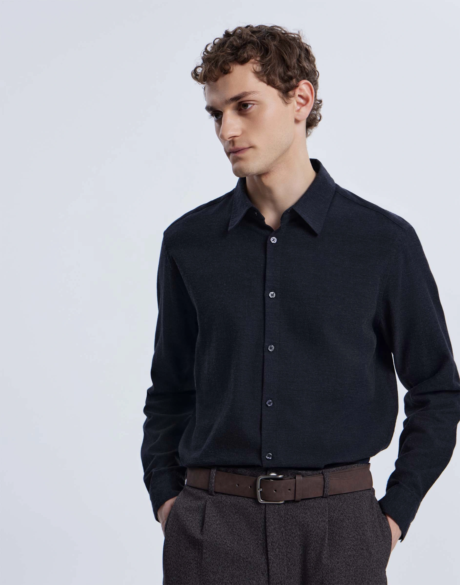 Тёмно-синяя классическая рубашка из твила Bwt001850-2