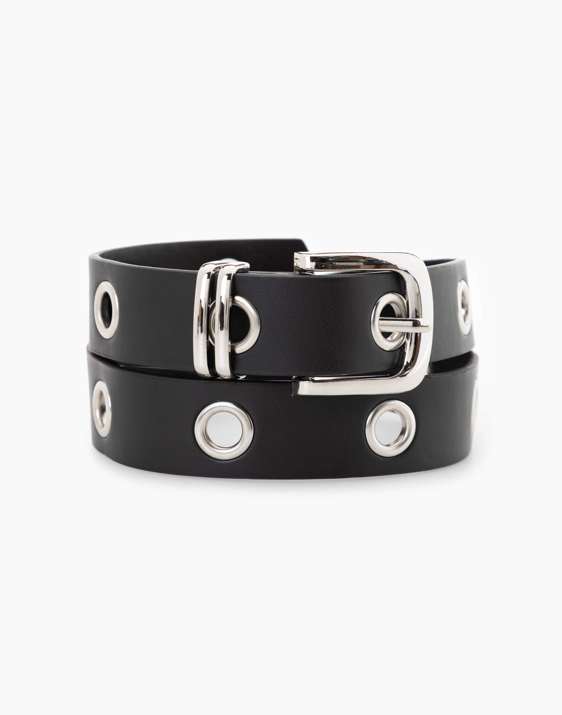Чёрный ремень из искусственной кожи с люверсами Gas017657-1