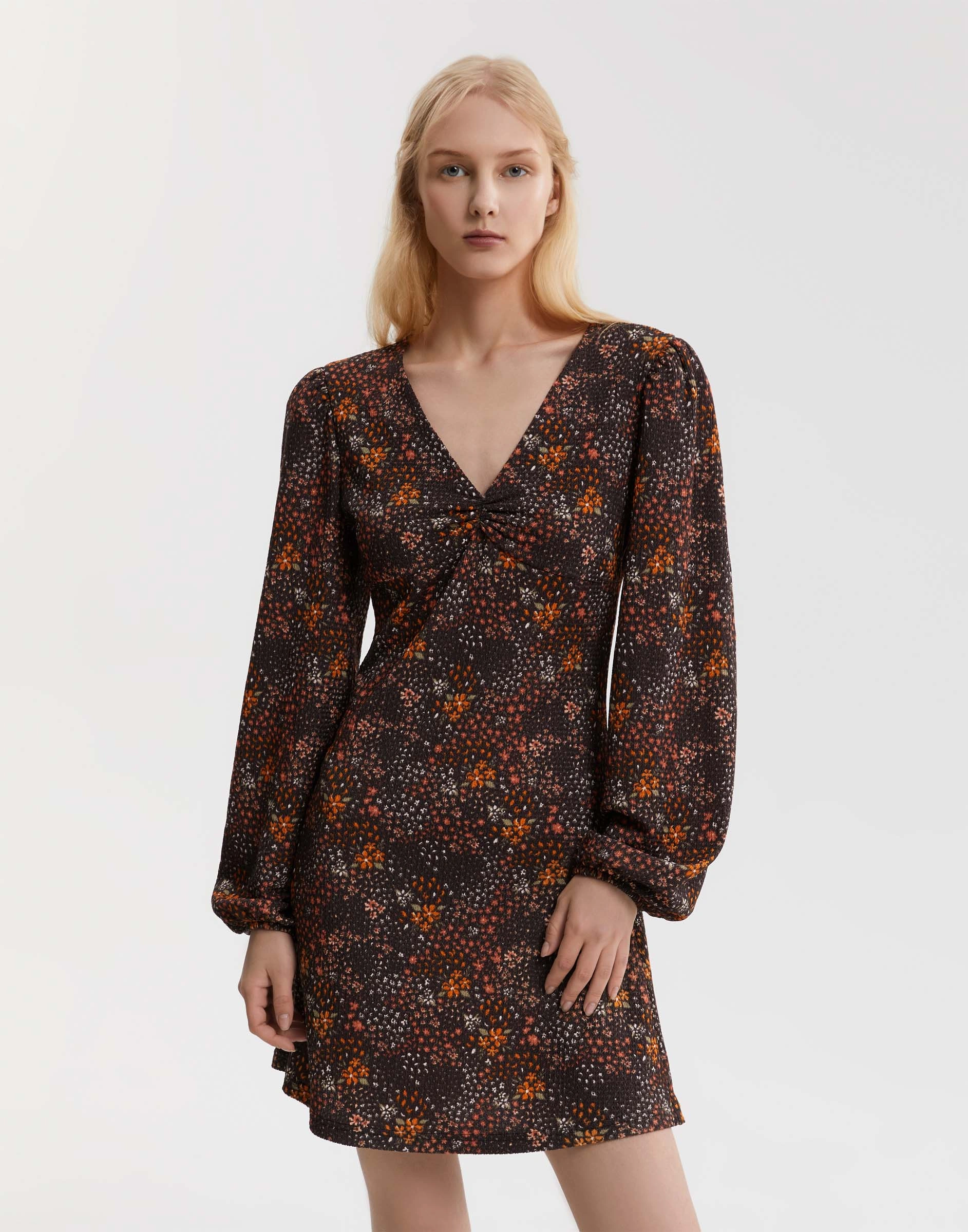 Платье мини из кринкла с цветочным принтом Gdr030426-1