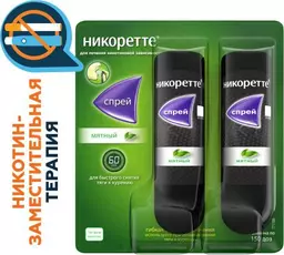 Никоретте спрей для слизистой оболочки полости рта дозированный мятный 1мг/доза 13.2мл 150доз 2шт