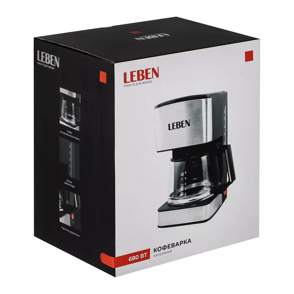 Leben Кофеварка капельная 680Вт со стеклянной колбой с функцией автоотключения 0.8л