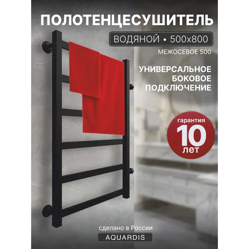Полотенцесушитель водяной лесенка Aquardis 80x50 см боковая универсальная подводка нержавеющая сталь цвет черный матовый