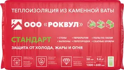Утеплитель Роквул Стандарт 50 мм 9 шт 600x1000 мм 5.4 м²