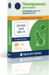 Vic Пинпрамиль Антигельминтный препарат для кошек весом более 2 кг, со вкусом мяса, 4 таблетки