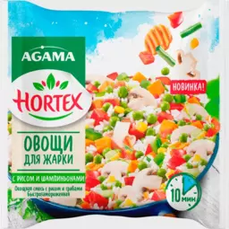 Овощная смесь Овощи для жарки Agama зеленый горошек сладкий перец морковь лук кукуруза с рисом и шампиньонами замороженные, 400 г