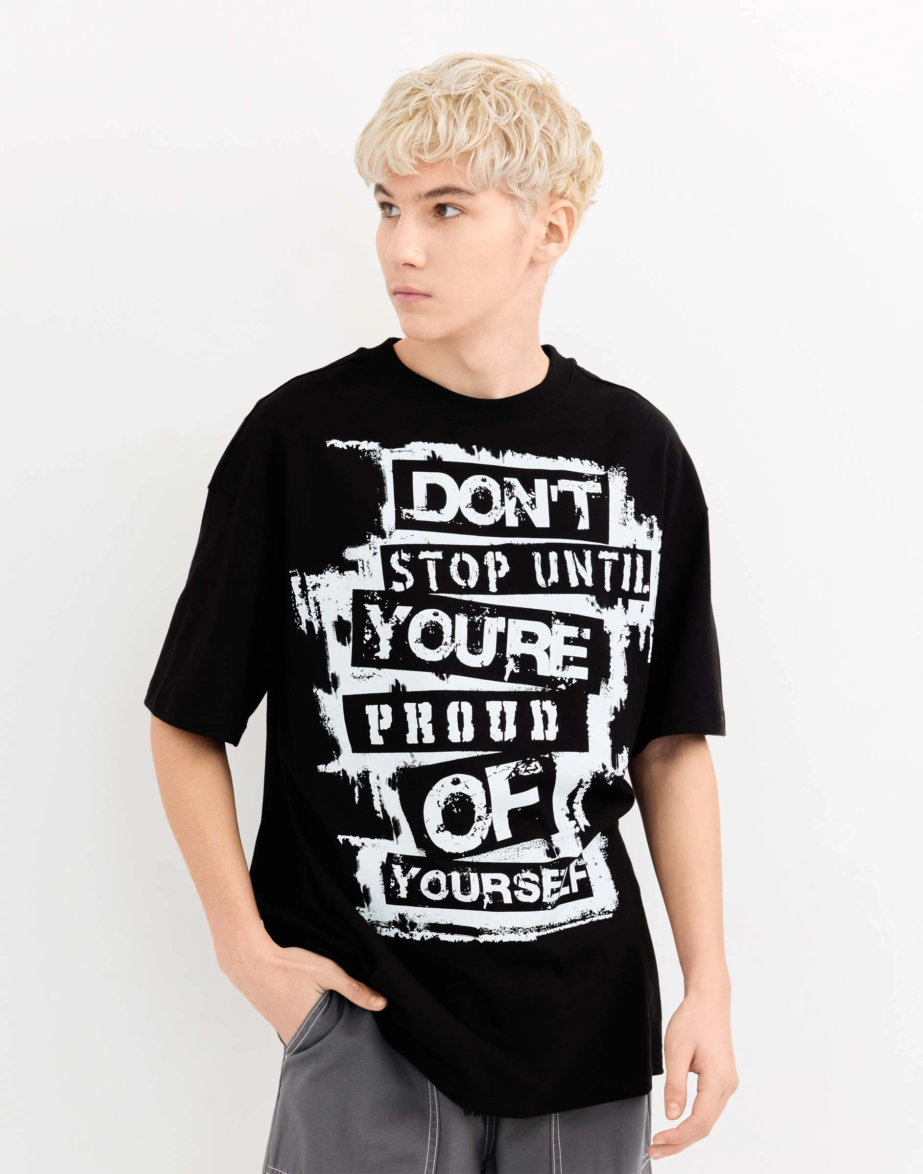 Чёрная футболка superoversize с принтом Bkt016911-1