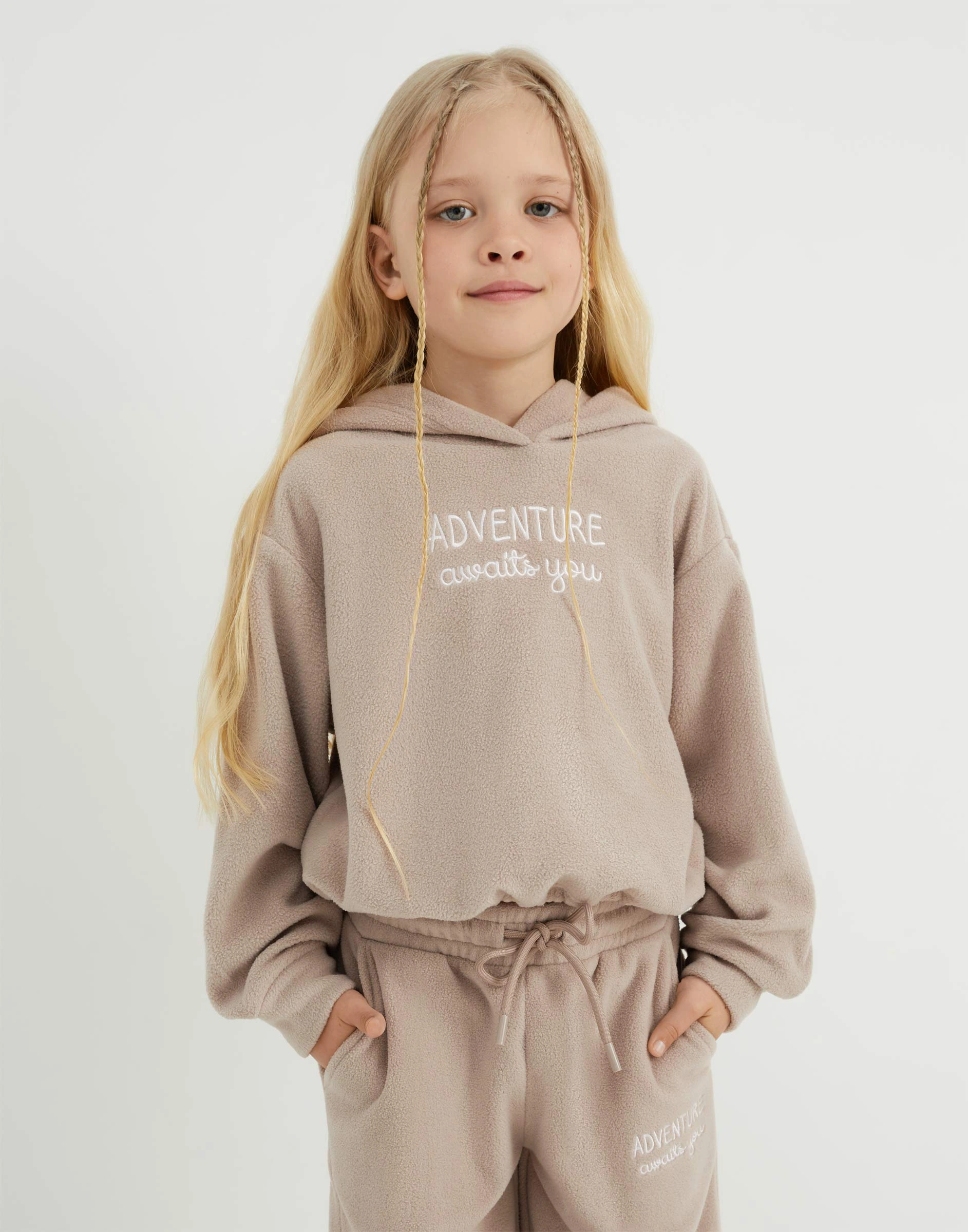 Коричневое худи-трансформер oversize с вышивкой для девочки Gac024936-2