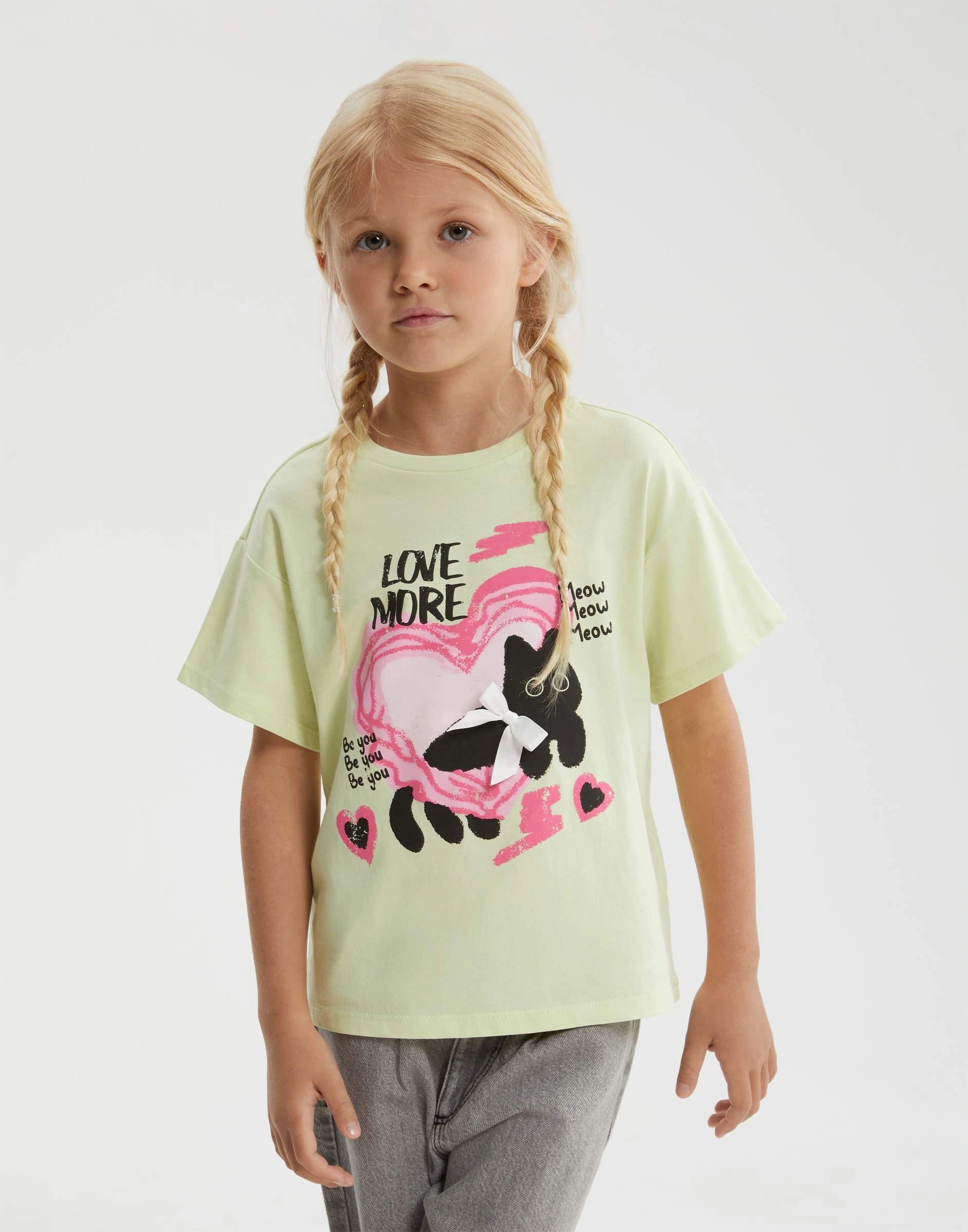 Светло-зеленая футболка oversize с принтом для девочки Gkt027932-2