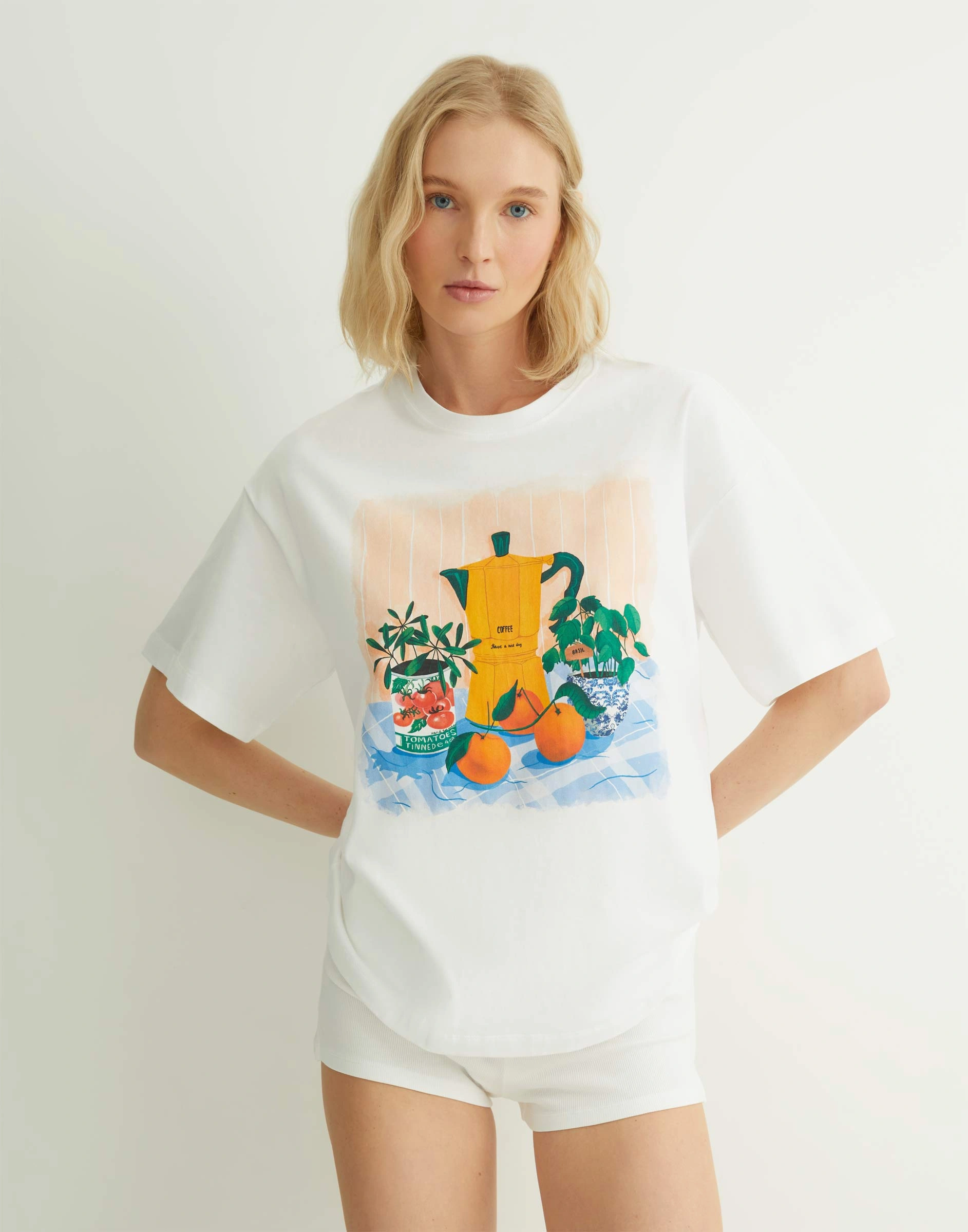 Белая пижамная футболка oversize с принтом Gsl002722-1