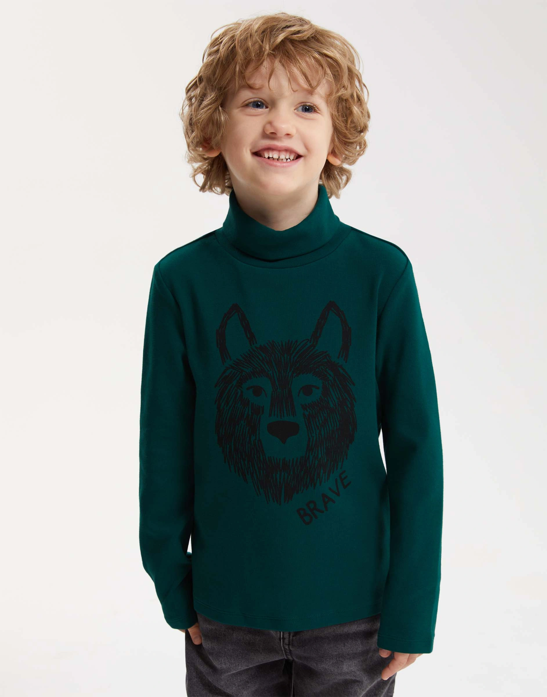 Тёмно-зелёная водолазка с принтом для мальчика Bsw002042-2