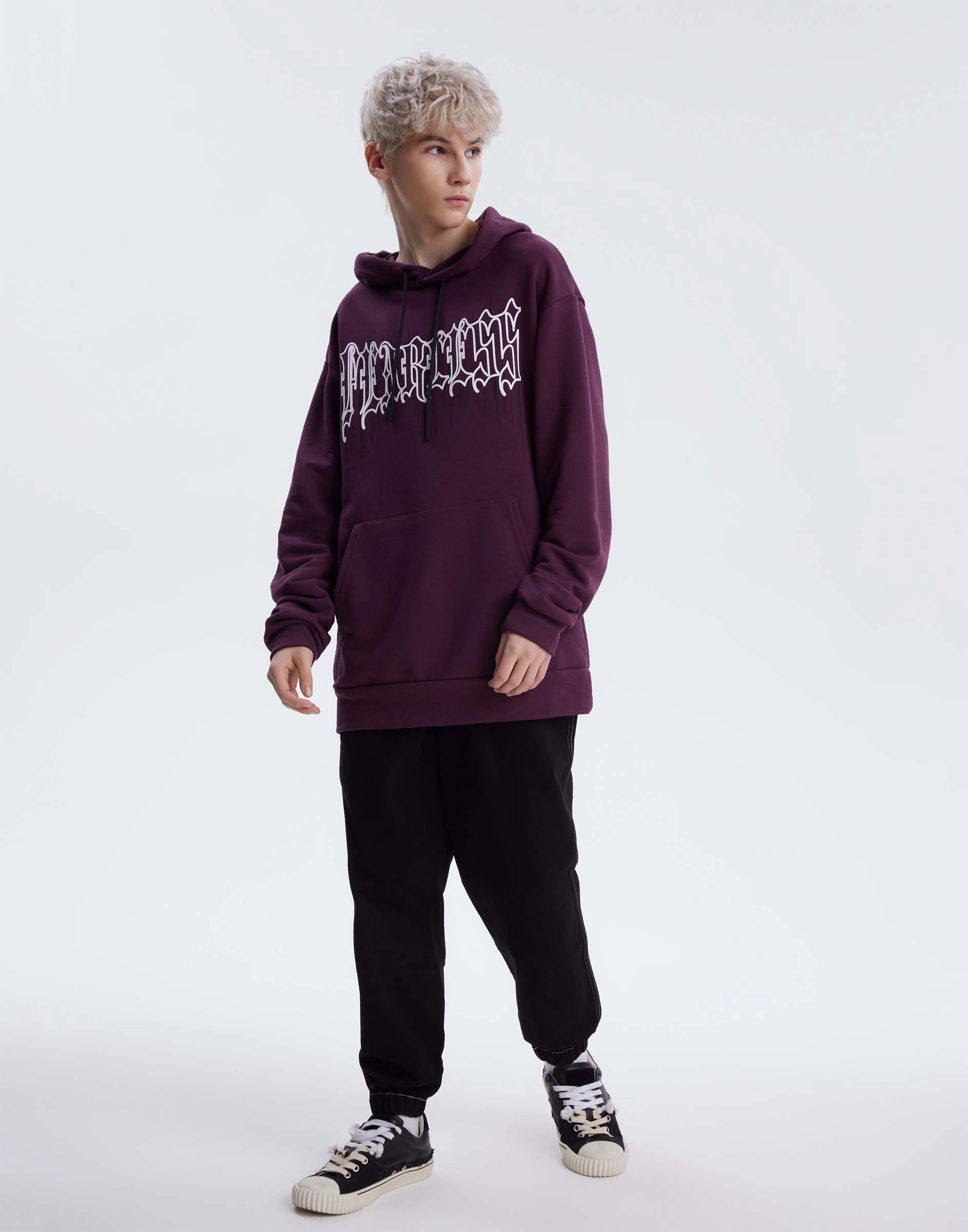 Лиловое худи oversize с принтом Bac014275-1