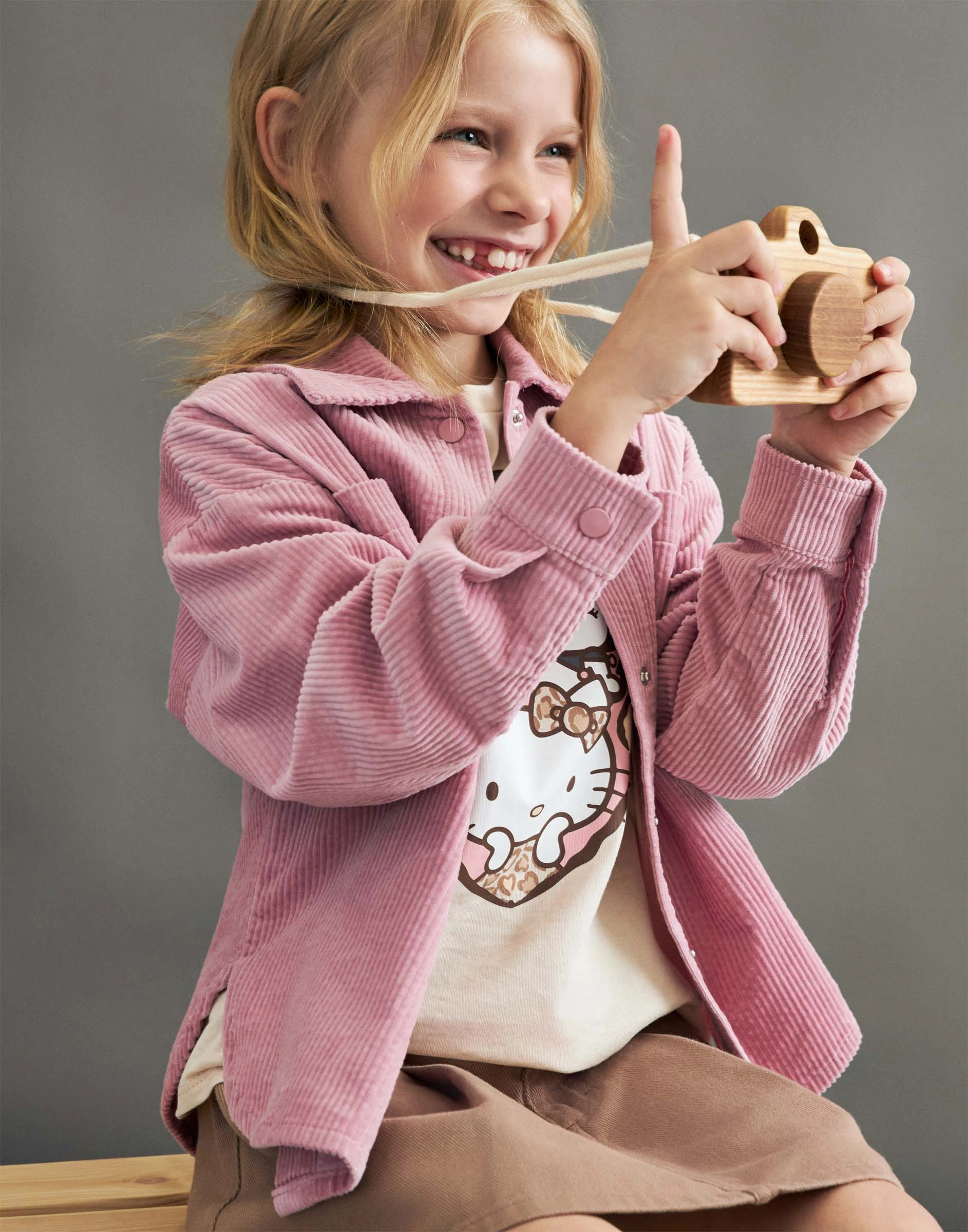 Пыльно-розовая рубашка oversize из вельвета для девочки Gwt005046-1