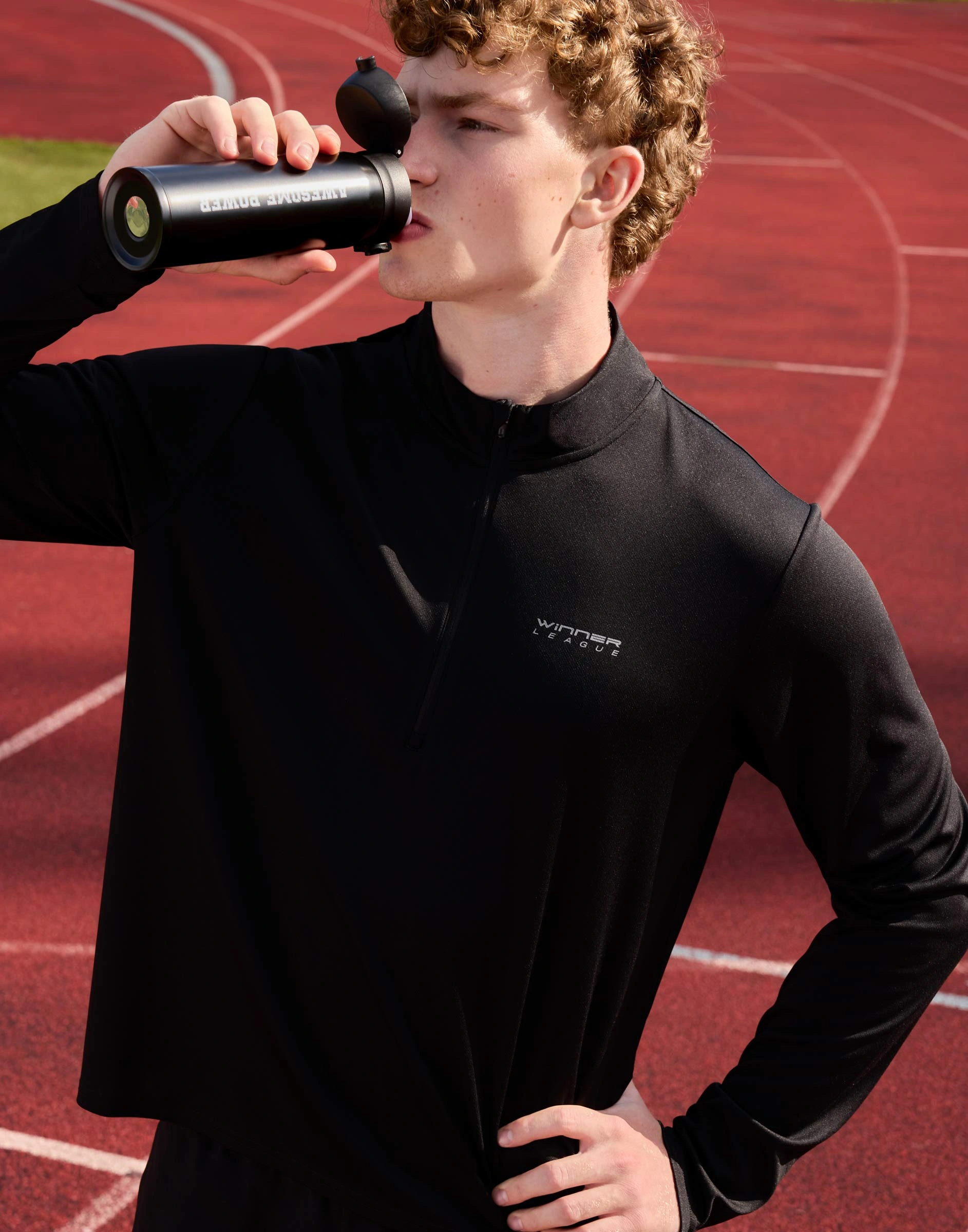 Чёрный спортивный лонгслив с воротником-стойкой на молнии Brt000143-1