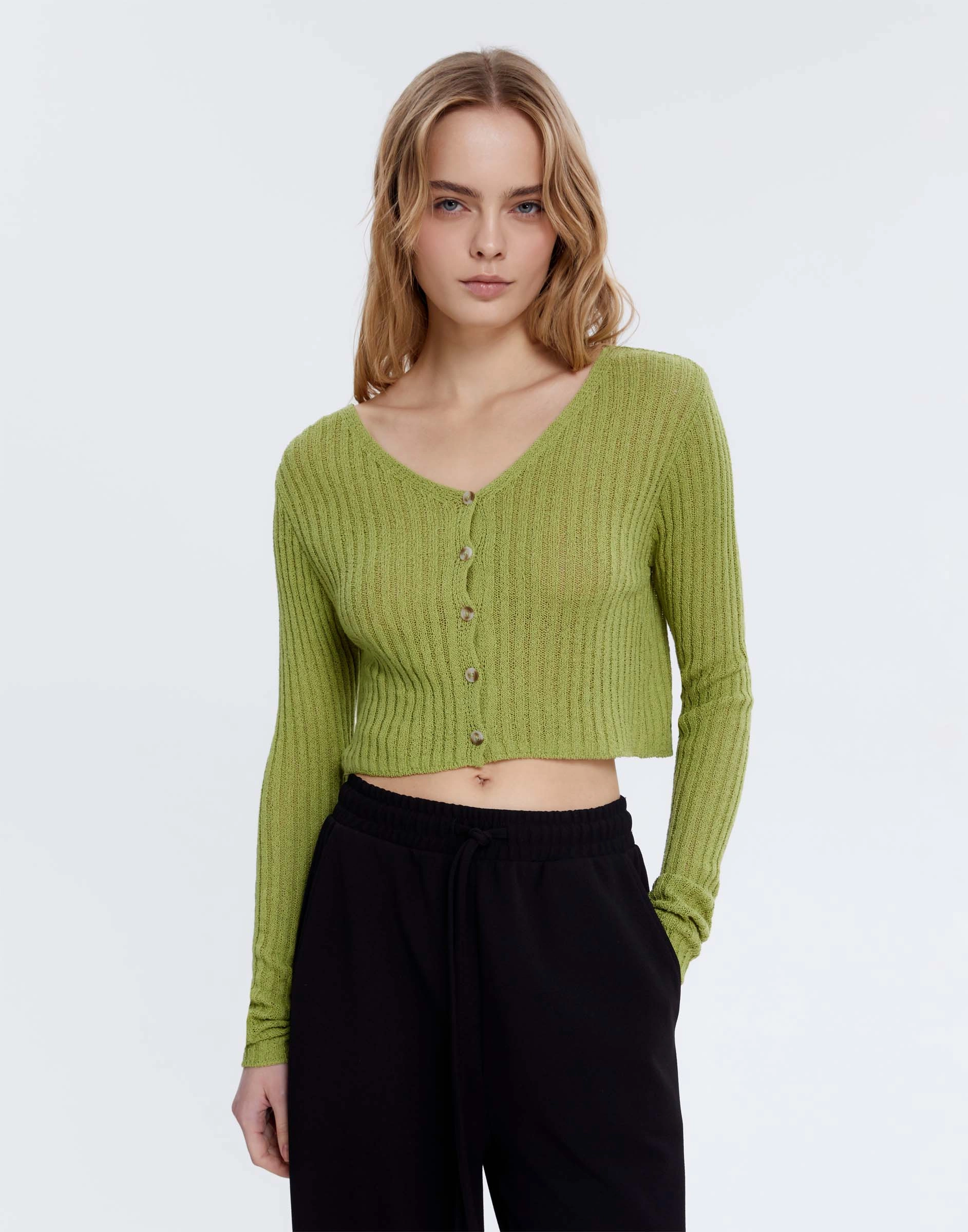 Зелёный укороченный кардиган Gsw007785-1