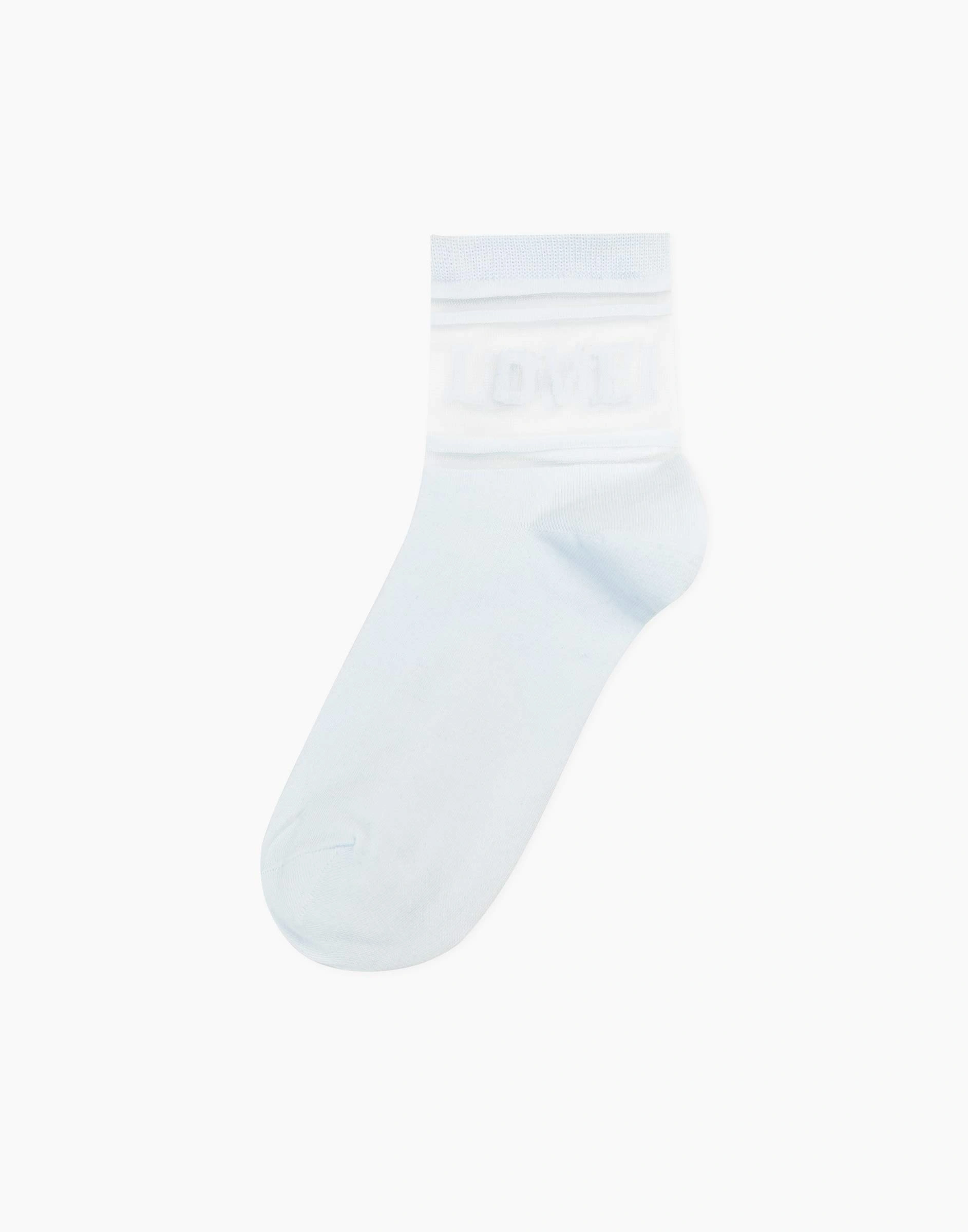 Синие носки с прозрачными вставками и надписью Ghs010464-1