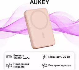Внешний аккумулятор Aukey Magnetic 10000mah Qi 20W Pink