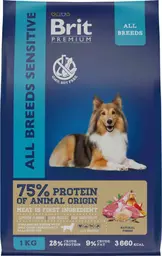 Сухой корм для собак всех пород Brit Premium Sensitive ягненок-рис, 1кг