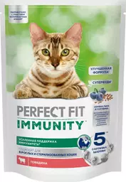 Сухой корм для кошек Perfect Fit Immunity говядина-семена льна-голубика, 580г