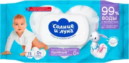 Влажные салфетки для детей льняные Солнце и Луна Нежная ромашка и хлопковое молочко, 72шт.