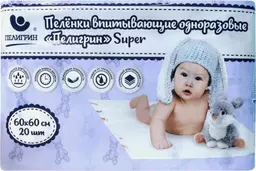 Пелёнки детские одноразовые Пелигрин Super впитывающие 60×60 см, 20шт.