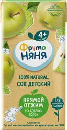 Сок детский прямого отжима Фрутоняня Яблоко, с 4 месяцев, 200мл