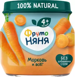 Пюре Фрутоняня Морковь, с 4 месяцев, 80г