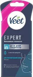 Восковые полоски для чувствительной кожи лица Veet Expert с маслом миндаля, 20шт.